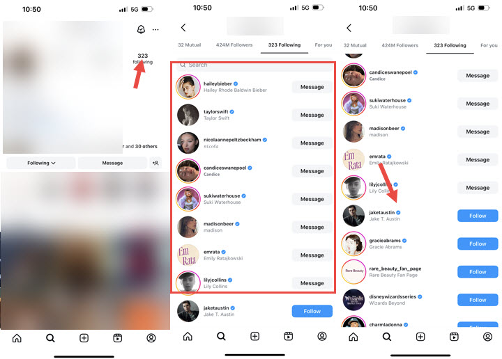 - Step 2: Tap on the "Following" count to view the list of accounts. Mutual connections are shown at the top, followed by other accounts in the order they were followed, with the most recent first.