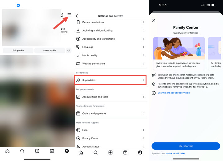 Another way to see who someone recently followed on Instagram is through its Supervision feature. Supervision on Instagram refers to a set of parental controls designed to help parents or guardians monitor and manage the activity of their teens on the platform. With supervision tools, parents (must be 18 or older) can view how much time their teens (between the ages of 13-17) are spending on Instagram, set daily limits, see who they're following, and monitor who follows them back.