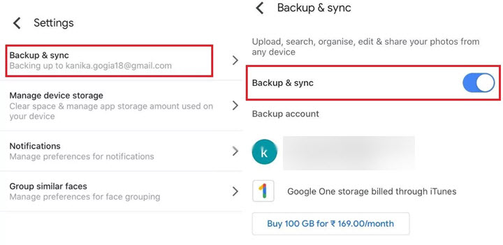 Step 2. Tap on the Profile icon on the top right corner of the screen, and select Photos settings. Tap Backup & Sync and toggle the switch on. Wait for Google Photos to back up and sync your media files.
