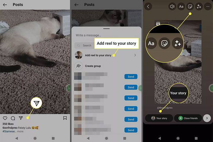 Please note that you can only repost a Story if the original poster has tagged you, and their account must be public or you must be following them if their account is private. But if you are not tagged in, you'll have to either use a screen recorder or a third-party app. Be sure to get written or verbal permission to share the post first.
