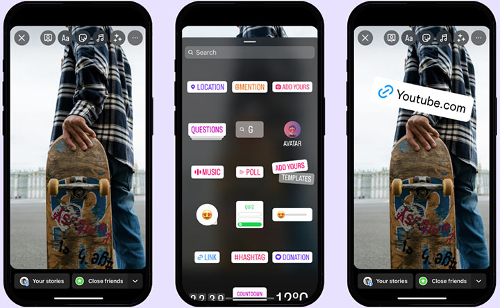 - After selecting or recording your video, you can add stickers, text, music, or effects to customize your Story.
