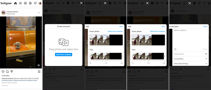 - After choosing your video, avoid the Reel option. Instead, proceed with the usual Post workflow.