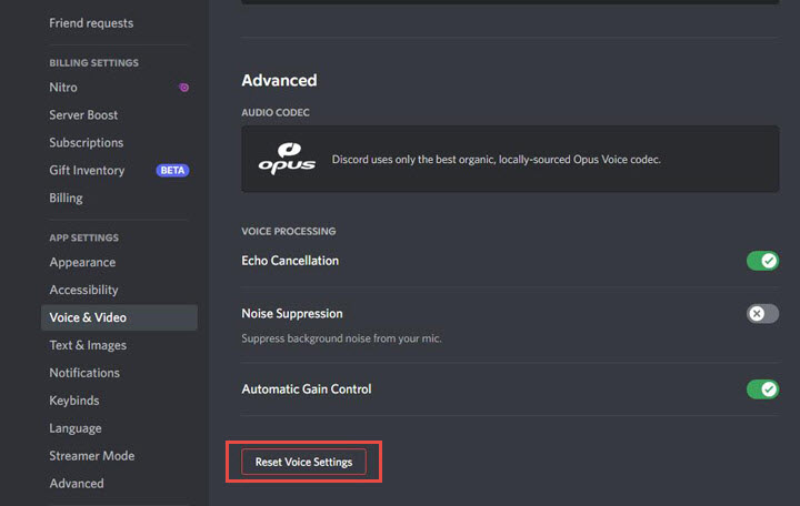 When coming across such a problem, the first thing to go over is to check whether Discord has all the administrative access on your computer. On top of that, make sure the audio drivers are working properly on your computer. Besides, try to reset the Discord audio system to see if the problem is fixed, as you may have inadvertently changed a setting or messed around with your input and output device for your voice chat, which can be the reason why you can't hear Netflix stream on Discord.