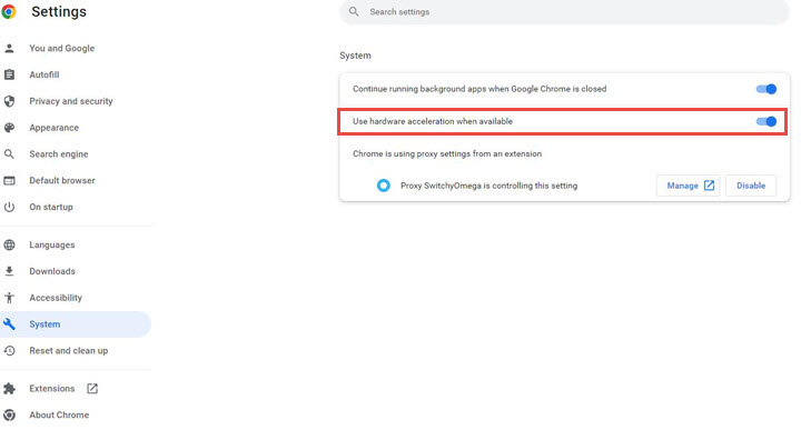 - Disable Hardware Acceleration On Google Chrome: Open settings, go to "Advanced," and toggle off "Use hardware acceleration." Restart Chrome to apply the changes. Keep in mind that this can troubleshoot the black screen issues during a Netflix stream on Discord, but might affect rendering speed on certain websites.
