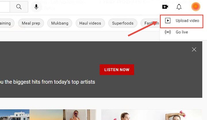 Step 1. Sign in to your YouTube account, and in the top right, click Create > Upload videos.