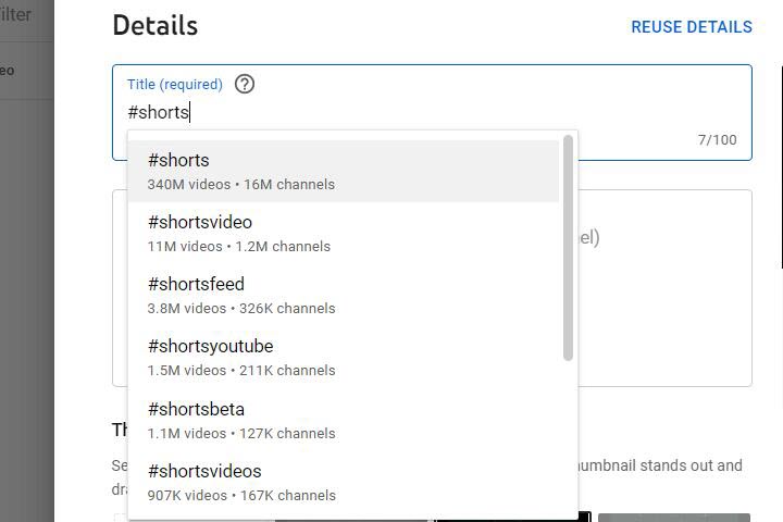On the Details page, add a title with the #Shorts tag, set visibility, and choose your audience.