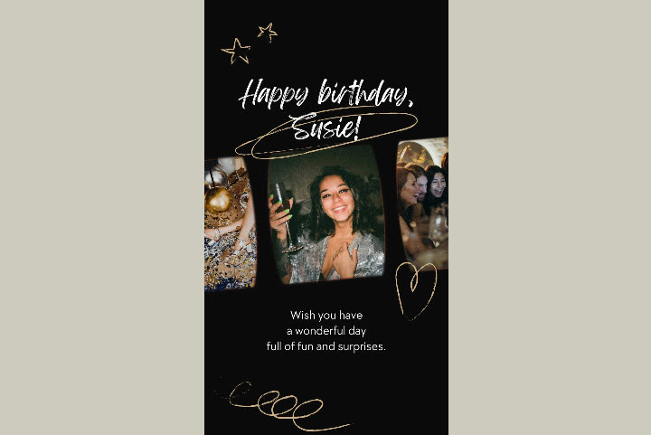 In addition to the montage, you can create a visually captivating collage that blends photos, videos, and personal touches to celebrate the birthday person. You can start with a selection of meaningful images and arrange them in a dynamic layout using Instagram’s tools. Add short video clips that capture special moments and include stickers, emojis, or hand-drawn doodles that reflect your relationship. Enhance each image with captions or text overlays that highlight the significance of the moment. Finish with a central, standout image framed with decorative borders, resulting in a rich, layered collage that tells the story of your bond and makes the birthday celebration truly unforgettable.
