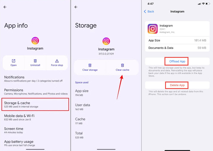 5. Clear Instagram Data and Cache