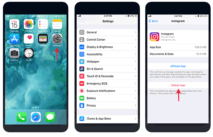 Step 4. Tap Delete App. Go to the AppStore to download and install Instagram.