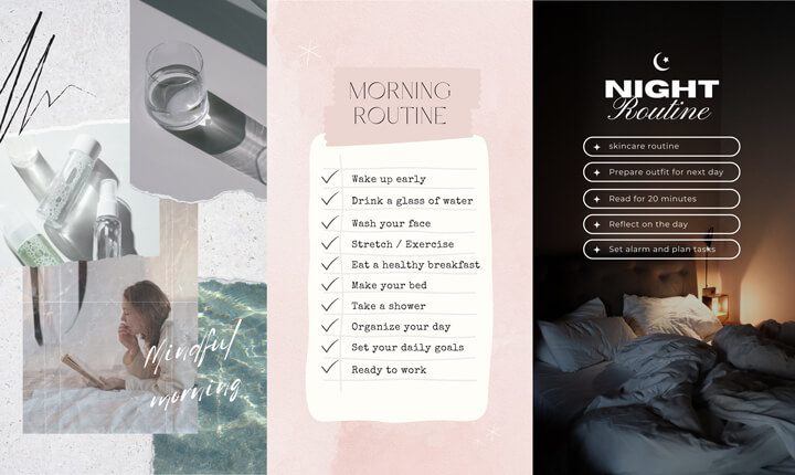 Rituals are a hot topic on social media, and sharing your morning or night routine can be both inspiring and informative for your audience. Whether it's a calming, slow morning with yoga and journaling or a productive kickstart with a workout and a healthy breakfast, morning routines resonate with followers who are looking for motivation and self-care inspiration. Alternatively, you could share your evening rituals, such as skincare routines, winding down with a good book, or a cup of herbal tea before bed.
