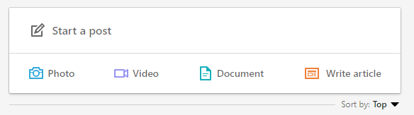 - Step 1: Come over to the top of the LinkedIn feed to find the share box, and click this.