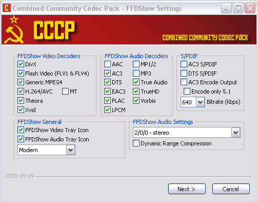 Combined Community Codec Pack was a collected archive of codecs (video compression filters) packed for Microsoft Windows. Originally, it was developed by members of various fansubbing groups for anime playback. In its later updates, MP4, AVI, FLV, TS, and more video formats are supported. But in 2015, the update was stopped and there's no official download supported.