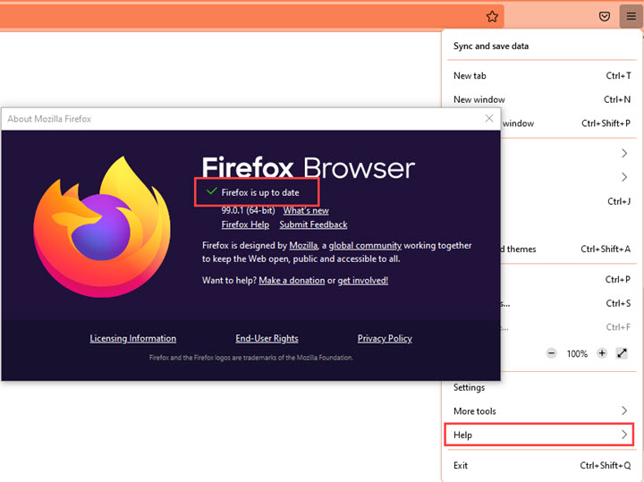 Step 1: To update, click the menu, go to Help, and then select About Firefox. The browser will automatically check for and install updates.
