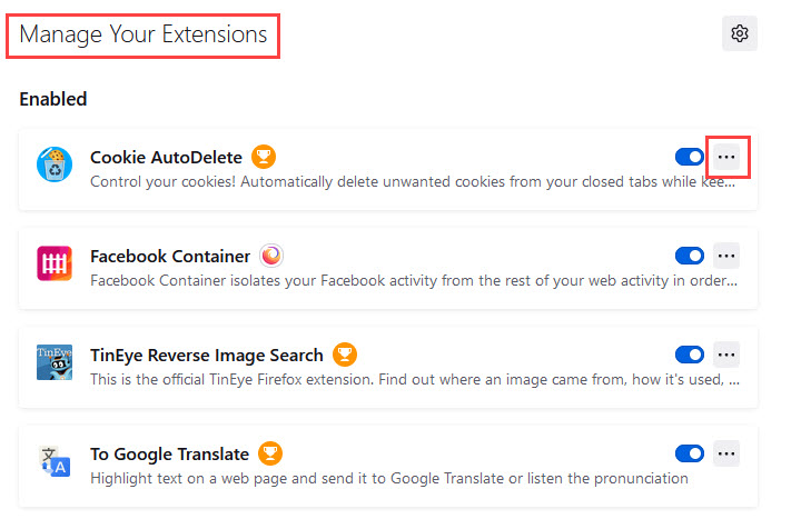 Step 2. Scroll through the list of extensions, and remove the extensions you wish to remove by clicking three-dot icon > Remove.