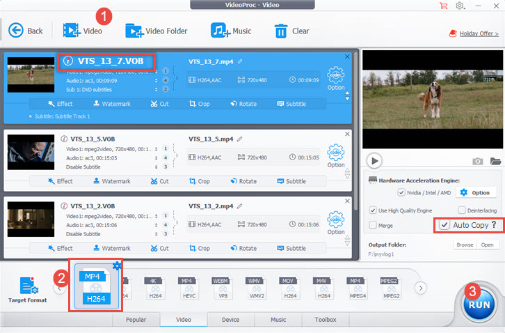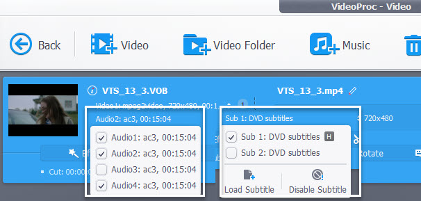 - VideoProc Converter AI will automatically choose the VOB that truly contains the video content.
