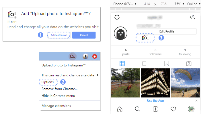 If it is difficult for you to get familiar with a panel full of things like source code, then installing a plug-in might be the right way to go. Upload photo to Instagram™ offered by lirikves is an easy-to-use extension that can be added to Chrome and allows you to post photo to Instagram on desktop PC.