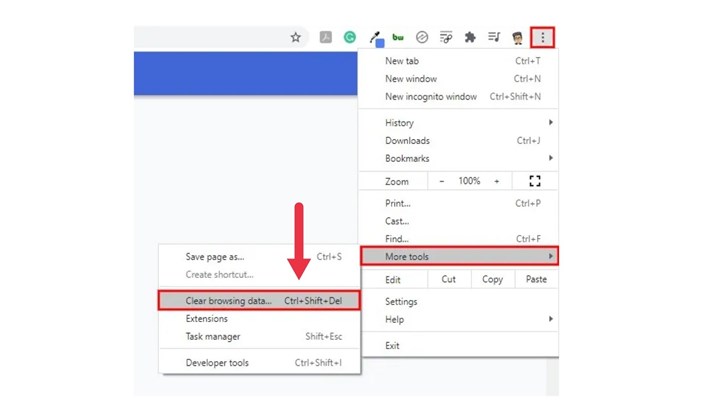2. Go to"More tools" and choose"Clear browsing data."