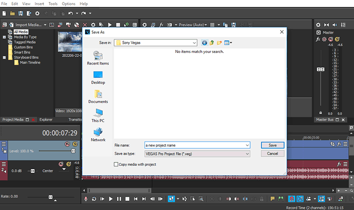 Some unknown glitches might also lead to Sony Vegas not rendering the whole video. If you have Render Loop Region Only turned off but Sony Vegas still renders only part of the video, then you may try to save the current project with a new name and then render the new version. Here's how:
