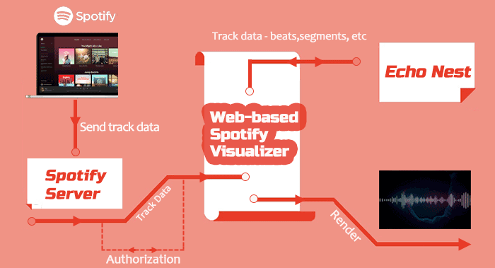 Analysis of music components might be the key for audio visualization. Spotify visualizers leverage the music analysis data provided by the Echo Nest (now part of Spotify) via the Spotify API. This data breaks down each song into components like beats, segments, and bars, and also provides information on tempo, energy, and other musical characteristics. The visualizer then uses this information to create dynamic visualizations that respond to the music's structure and mood.
