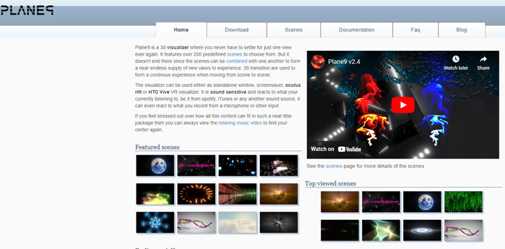 Plane9 is a Spotify audio visualizer for Windows computers. It is best at generating 3D visualizations alongside the music beat drops. If you have a vein of retro nostalgia visualizations, you will love the 250 predefined scenes, such as music particles, glowing cube, disco ball, curvy lines, etc. Better yet, this tool can combine the scenes seamlessly with another one, thus creating endless possibilities as your eye candy.