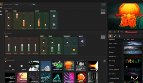 Synesthesia is professional VJ software that can be used as a Spotify visualizer. It readily reacts to live audio, and gives you buttons for real-time tweaking. There are cool effects such as circuit bending, cloud ten, compound iris, filter blown, glob, and 50 more built-in scenes. For all the shaders and graphics to transform with the music grooving, you can simply log in to the Spotify account, and let Synesthesia take care of the graphic generating.