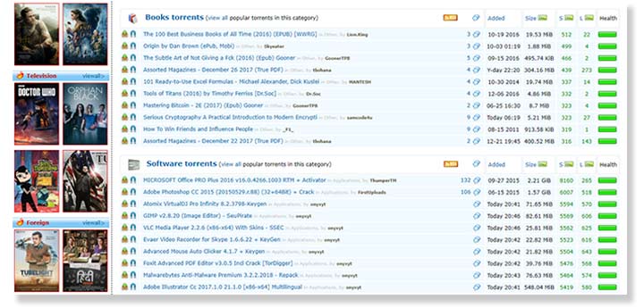 It's not as resourceful as other torrent sites I list up on this page, and many torrent files have zero seeders and leechers. However, it tops the chart of the best torrent site for shows list, and superiors to most torrent sites in terms of TV shows seeds, both the quantity and the quality. Navigate to the top right corner of Torlock to find a category, press on it, and choose televisions, you are going to find a long list of trendy TV shows. What's more? Torlock focuses on the risk-free torrent and promises to compensate USD1 for each torrent file with a virus that you've downloaded from Torlock.