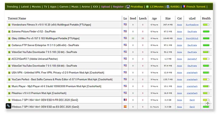 Torlock collects movies, television, games, music, software, anime, ebooks, audiobooks, images, adult, and other sorts of seeds from the internet. On its homepage, it provides you the freshest and popular torrents with a well-designed icon to show the file type.