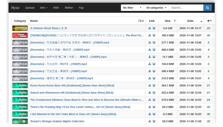 For unknown reasons, ShanaProject didn't receive lots of maintains and updates in recent years. The latest update of its post, Twitter, and social media accounts was in 2017. However, this one of the oldest anime-dedicated torrent sites created in 2008 is still receiving 11K visitors per day. Herein, you can find torrents of many classic anime series, as like, Digimon Adventure, Tonikaku Kawaii, kebukuro West Gate Park, Magatsu Wahrheit: Zuerst, and Black Clover.