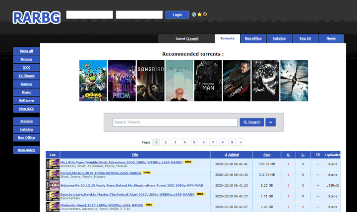 It doesn't enable any new registration anymore since the down of KickAssTorrents in 2016 which implies new users aren't allowed to upload torrents to RARBG. Another drawback of RARBG is that each click after you entering the homepage leads you to an ads page.