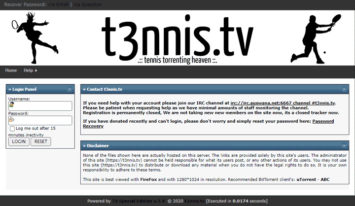 Even better, T2nnis has torrents for tennis relevant books and a tight-knit forum community dedicated to tennis. So, it's also a good place for those who'd like to study tennis. T2nnis is also a ratio based private tracker. You can't register for this website without being invited. And you need to ensure you've 'seeded' as much as you've downloaded.