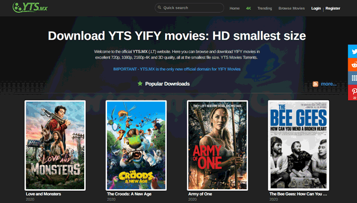 Are you looking to watch the latest movies in 2025, like Superman, Sinners, Mickey 17, and Companion? Or maybe you want to re-watch some old movies like Kissing Strangers (2010) and Angele (1934). YTS torrent site has exactly what you're looking for. It has an excellent collection of various genres of movies from different countries in great quality, including HD 1080P and 4K 2160P. The most alluring part is those high-definition videos come with the smallest file size, so they won't devour much storage space.