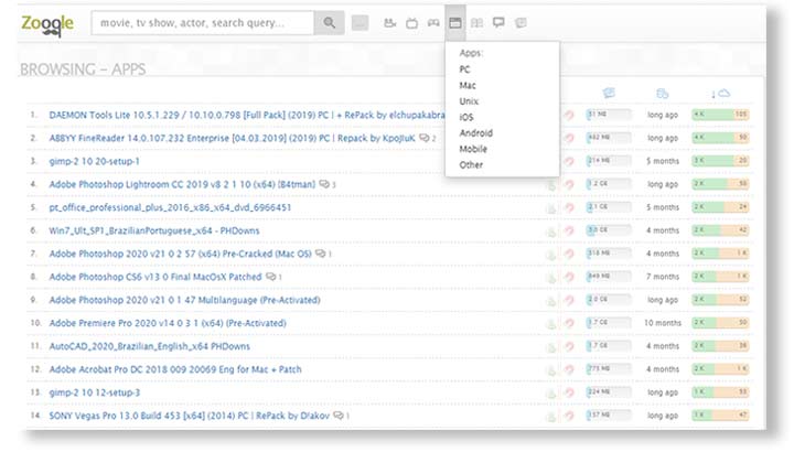 2. Library size | type: While torrent sites with large library size usually come with more rich content, the small torrent site may still have its core capability in some certain types of libraries. I'll search for different categories of torrents on all common torrents sites, and then pick up the best torrents site for music, books, movies, shows, games, software, and documentaries, etc.