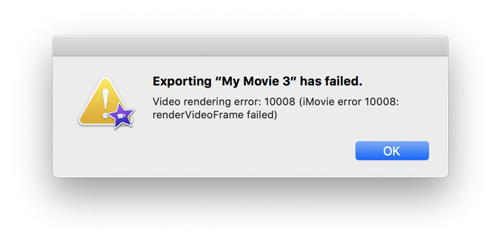 iMovie is the primary video editing software for Mac users because of its rich features and streamlined workflow. However, many users are frustrated by the error message, Video rendering error: 10008 (iMovie error 10008: renderVideoFrame failed) during exporting. After re-adjusting the output settings several times, the error remains unresolved yet.