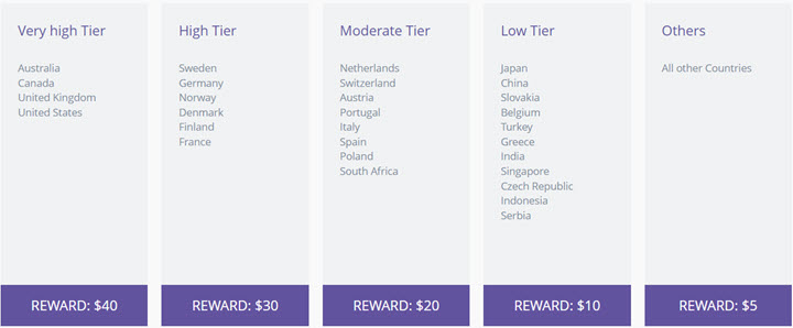 Openload also generated commissions through affiliate programs. The site recruited "uploaders" who could earn money by driving traffic to files hosted on Openload. These affiliates received a percentage of revenues earned from ads displayed alongside their uploaded content. It paid a fixed amount per 10k downloads/streams. Each payment amount per download/stream depends on the country the actions come from.