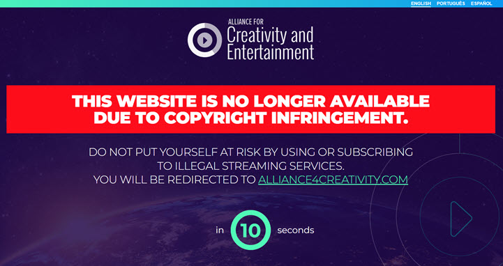 Now visit openload.co and you can see a banner saying that Openload is no longer available due to copyright infringement and it will redirect you to allience4creativity.com.
