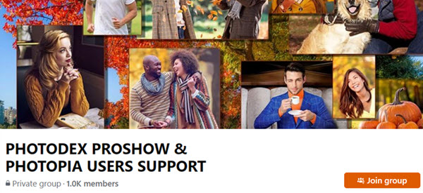 It is a private group aiming to help Photodex Proshow and also Photopia users with practical solutions and toturials. There are currently 1K+ users.