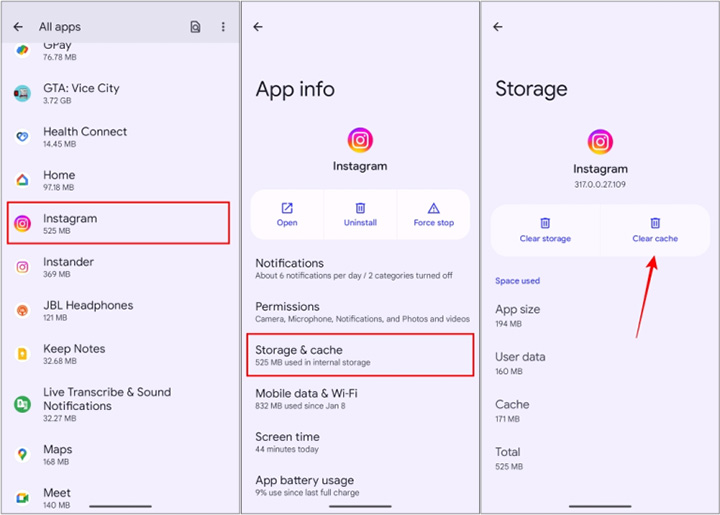 Accumulated cache data within the Instagram app can cause your stories to appear blurry. Cache files are temporary data stored by the app to improve performance and speed up loading times. However, over time, these files can become corrupted or take up too much space, leading to issues with how media is processed and displayed.