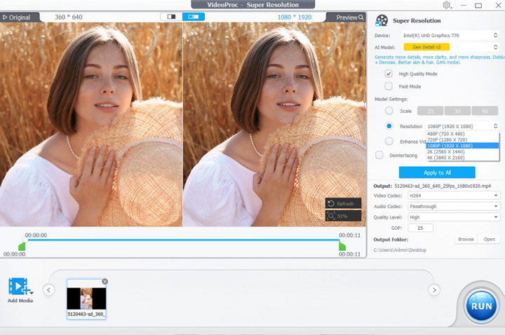As we already know, large video files, especially those in 4K resolution at 120 FPS, are likely to be heavily compressed by TikTok to reduce file size and improve loading times. This compression can result in blurry, low-quality videos. To prevent our TikTok videos from becoming blurry due to this compression, it's essential that we optimize our videos ourselves before uploading them. The ideal format for TikTok is MP4 with H.264 encoding, 1080p resolution, and 30 FPS. Of course, if our source video is already low quality, we should focus on enhancing it instead. Fortunately, whether we need to downscale a high-resolution video or enhance a low-quality one for TikTok – we can easily achieve our goal using VideoProc Converter AI.