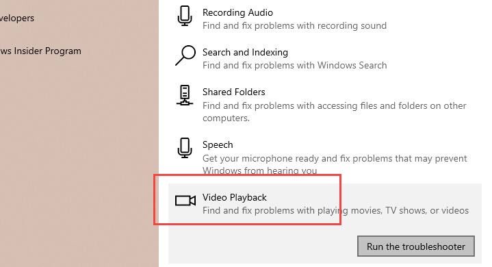 Step 2. Select Troubleshooting setting > Video Playback, and click 'Run the troubleshooter' button.