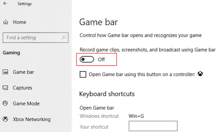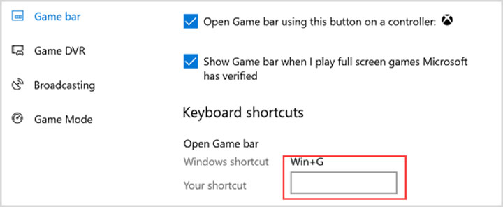Step 2. Click on Game bar and you go to the input box of Your Shortcut under Open game bar.