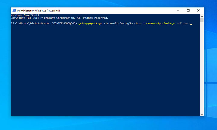 get-appxpackage Microsoft.GamingServices | remove-AppxPackage –allusers