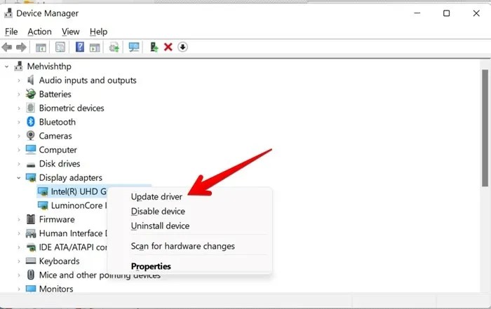 Step 2. Right-click the target graphics card under Display adapters and hit Uninstall.