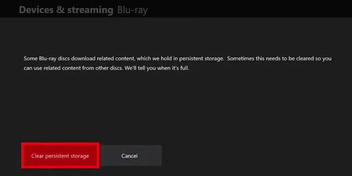 Xbox One inserts disc and nothing happens? Try the Clear Persistent Storage feature on Xbox One. Persistent storage is the retained data of the data storage device after the console is turned off. If files in persistent storage are corrupted, you may encounter issues like Xbox won't read disc or games taking too long to start. Clearing persistent storage can reset system settings and clear temporary data that may be causing issues with the disc drive or reading process, and potentially fix any software-related problems that may be hindering the console from properly recognizing and reading game discs. To clear persistent storage: