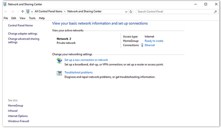 Step 1. Click on the network icon in the system tray and hit Open Network and Sharing Centers or a similar option.