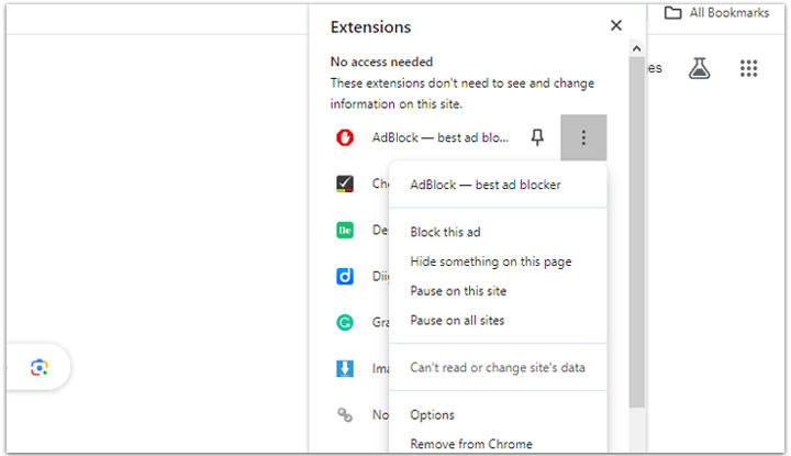 Step 3. Right-click or click on the ad blocker icon to access its options or settings.