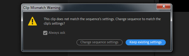 It's difficult for beginners to learn all those big concepts or to ensure that sequence settings match their source video. In that case, you can import the source video into resources bin, and drag it to timeline. Then Premiere will ask if you want the sequence settings to match your source video.