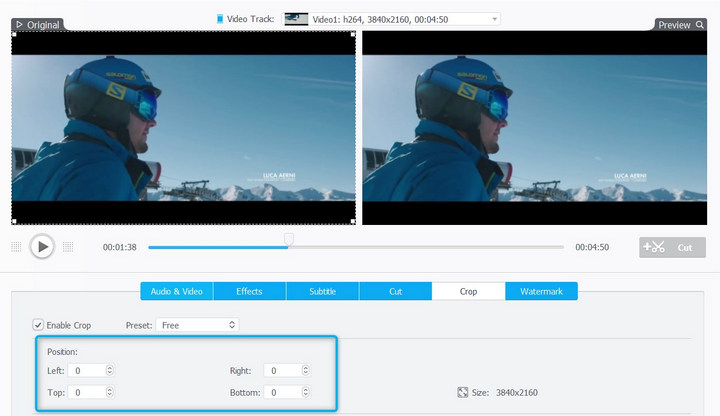 - Method 1: Mere one click - click Preset arrow to choose the common aspect ratio, such as 16:9, 4:3 and 1:1 (square video). That function is not supported in Premiere Pro and makes cropping easy especially for beginner-level users.