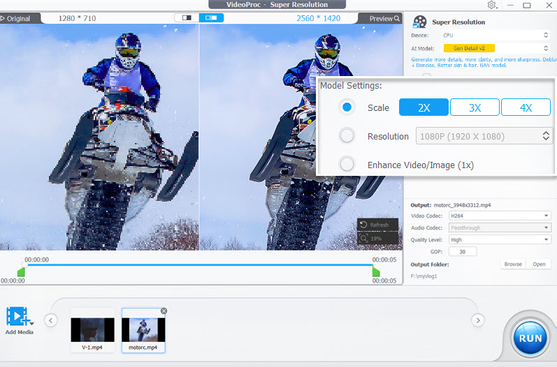 You can compare the before and after effects in the preview window. The difference will be more amazing when you export the video and playback in full screen, such as 4K large display.
