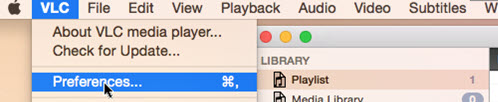 - Navigate to the Preferences window which is accessible from the VLC menu at the top bar.
