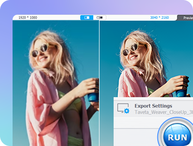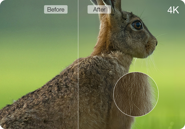 Upscale 720p/1080p to 4K with Auto-unblur & SharpenLow-resolution videos often appear pixelated or blurry on modern high-definition displays. By utilizing AI Super-Resolution technology, you can upscale 720p or 1080p footage to crisp 4K. Unlike traditional stretching, this method intelligently predicts and adds missing pixels, combined with auto-unblur and sharpening to restore fine textures and details for a true ultra-HD experience.